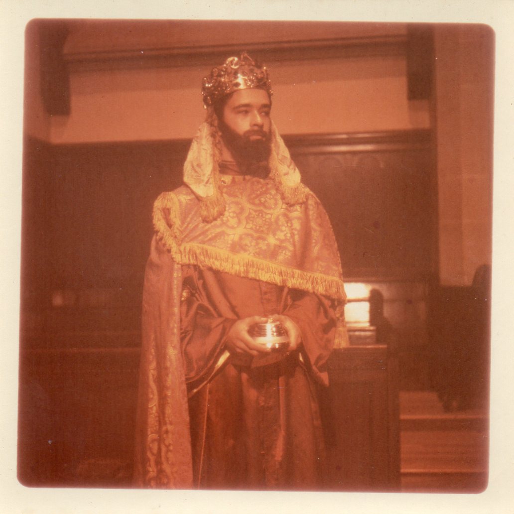 A primeira vez que entrei numa representação de Natal foi em Burlington, Vermont, nos Estados Unidos, quando fui um “exchange student”. Convidaram-me para participar da representação natalina da Igreja Metodista que minha família norte-americana frequentava. Eu fui um dos Reis Magos, Melquior, para ser mais exato. Gaspar era meu irmão norte-americano, e Baltazar um dos poucos negros da cidade que frequentava a igreja. E lá entrei eu na Igreja, ao som de um órgão, olhando o céu, como se visse uma estrela, em direção ao altar, com manto, coroa, barba postiça e tudo. Tenho uma foto. Depois, me pediram para tocar acordeão. Toquei. Eu só sabia duas músicas. Felizmente, uma delas era Noite Feliz. Toquei com barba, manto, coroa e tudo. Deu certo.