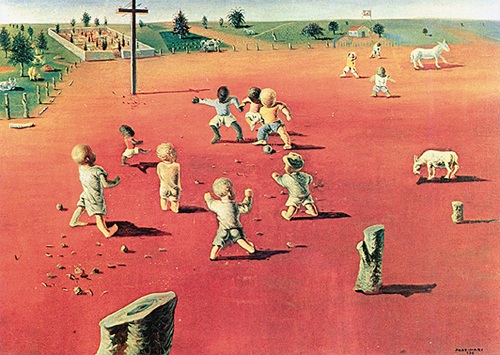 A temperatura era de quase quarenta graus quando os dois times entraram em campo. O da casa tinha a camisa em listas verticais pretas e verdes. O time visitante vestia uma camisa branca com golas e punhos vermelhos. Era a decisão da zona oeste do estado, segunda divisão.
