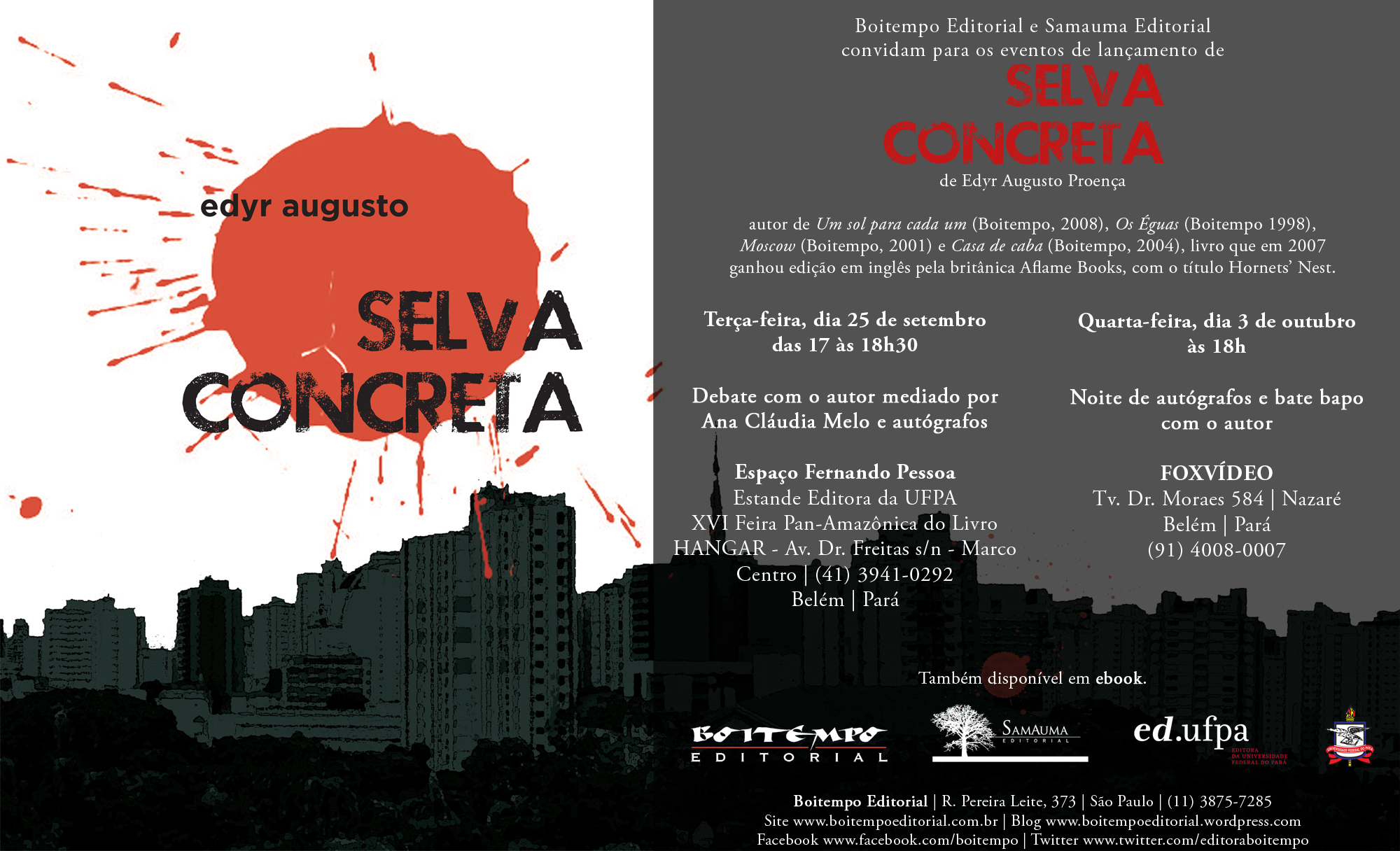 A Boitempo Editorial acaba de lançar, em conjunto com a Samauma Editorial, Selva Concreta, a nova ficção do jornalista, radialista, dramaturgo e escritor paraense Edyr Augusto Proença.