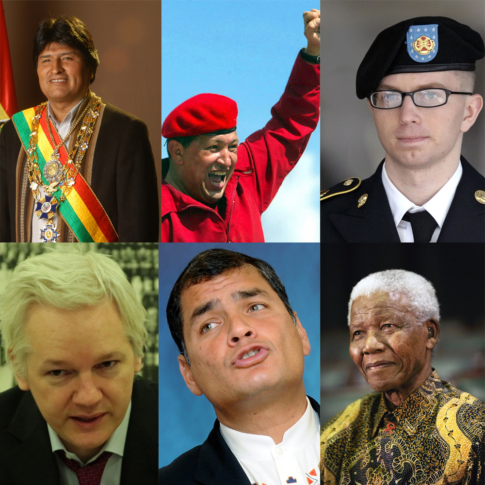Rafael Correa, Evo Morales, Nelson Mandela aumentam aqui o pequeno rol de verdadeiras celebridades e que, por mais que façam o Departamento de Estado, a CIA, os quinta-colunas do jornalismo internacional, os analistas políticos e econômicos candidatos à boa vida neoliberal, não conseguem ser crucificados como gostariam os ventríloquos do moribundo neoliberalismo.