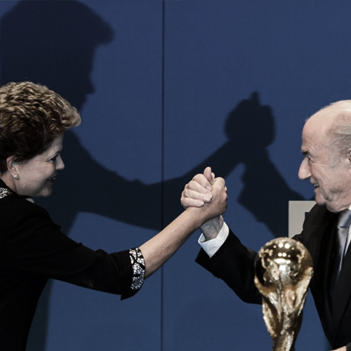 Passemos ao lado inverso da paralaxe. Se fecharmos o olho da esquerda, sobrante o olho da direita que tudo vê, assumimos a perspectiva dos que advogam que “vai ter copa, sim”. Na paralaxe de direita precisamos de menos pessimismo negro sobre o mundo e mais pessimismo branco sobre quem realmente somos: egoístas, interesseiros, corruptos e safados, “como todo mundo”. Os herdeiros hobbesianos do espírito nacional, livres empreendedores, fazem as contas dos benefícios gerados pela realização da Copa do Mundo em outros países. A luta de todos contra todos fará dos estádios, em desemprego futuro, verdadeiras colmeias de Mandeville. Para estes a Taça do Mundo é nossa porque sempre foi nossa, por direito divino do deus do futebol e de seus representantes terrenos. Quando Wagner Maugeri, Lauro Müller, Maugeri Sobrinho e Victor Dagô compuseram esta música para a nossa primeira vitória em copas do mundo, na Suécia em 1958, havia a regra da FIFA, de que o país que fosse três vezes campeão de forma seguida ou alternada, ficaria com a taça Jules Rimet para si, em definitivo. Ou seja, a taça do mundo era nossa… até 1962 no Chile (ganhamos de novo). Só em 1970 ela se tornou definitivamente nossa, data que funda a direita festiva no país. Nossa até ser roubada da sede da CBF, subsistindo até hoje apenas a cópia feita a mando de Pelé. Os ladrões derreteram a taça Jules Rimet original, para vender seu peso em ouro. Portanto, ao sucesso de 1958, “A taça do mundo é nossa”, deveríamos acrescentar “…por enquanto”.