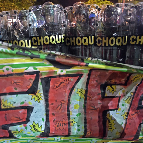 [12 de junho: conflito entre manifestantes e o choque em Copacabana, Rio de Janeiro, próximidades da FIFA Fan Fest. A foto é de Yasuyoshi Chiba/AFP/Getty Images]