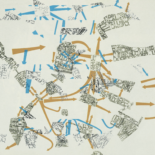 [“Illustration de hypothèse des plagues tournantes en psychogéographique”, Guy Debord, 1957]