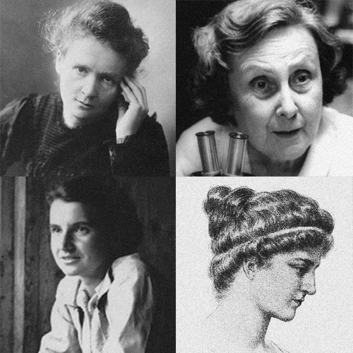 Essas mulheres são: Hipátia de Alexandria, Marie Curie, Rosalind Franklin e Bertha Lutz que, segundo o autor “sintetizam as trajetórias de inúmeras outras cientistas, como Lise Meitner (física austríaca) e Agnódice (médica na Grécia) citadas na peça, para lembrar que a insubmissão, em maior ou menor intensidade, é tão antiga quanto a submissão imposta pelo que a socióloga brasileira Heleieth Safioti chamou de o poder do macho”.
