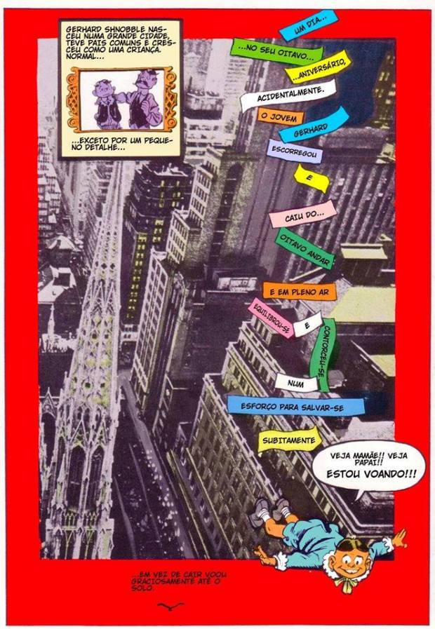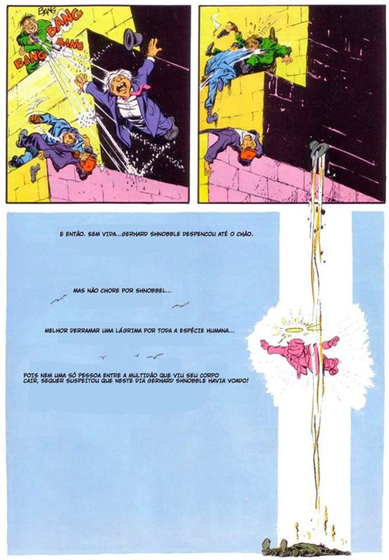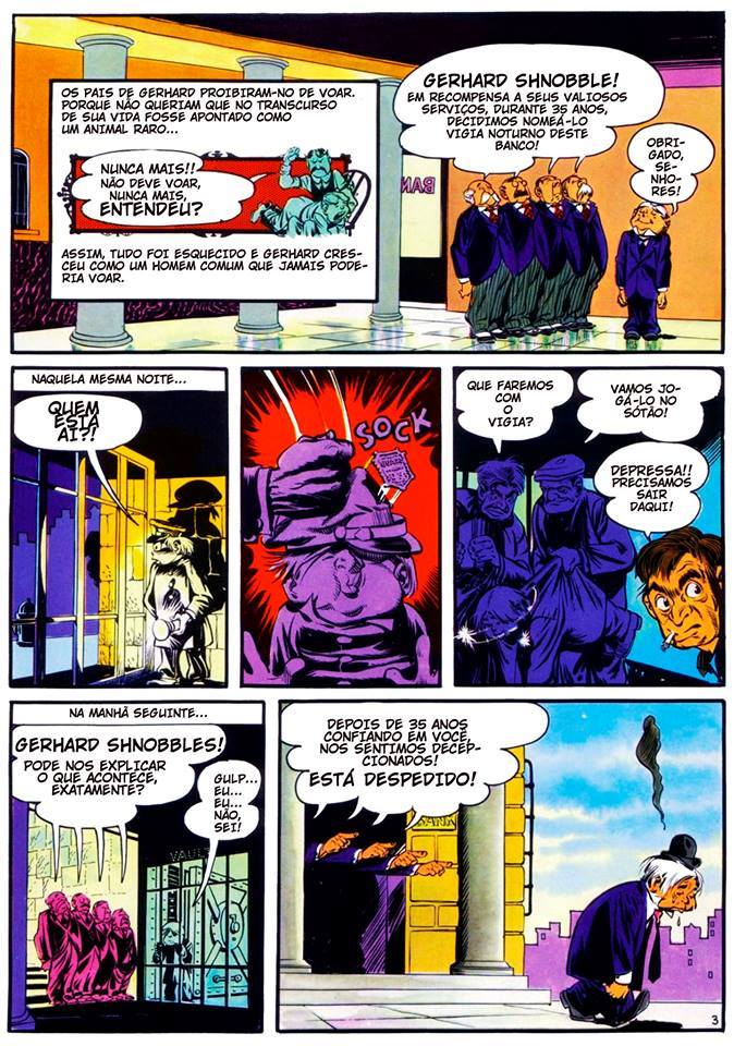 Trata-se da tocante história de Gerhard Shnobble, um vigia de banco frustrado, que um dia descobriu que poderia voar.