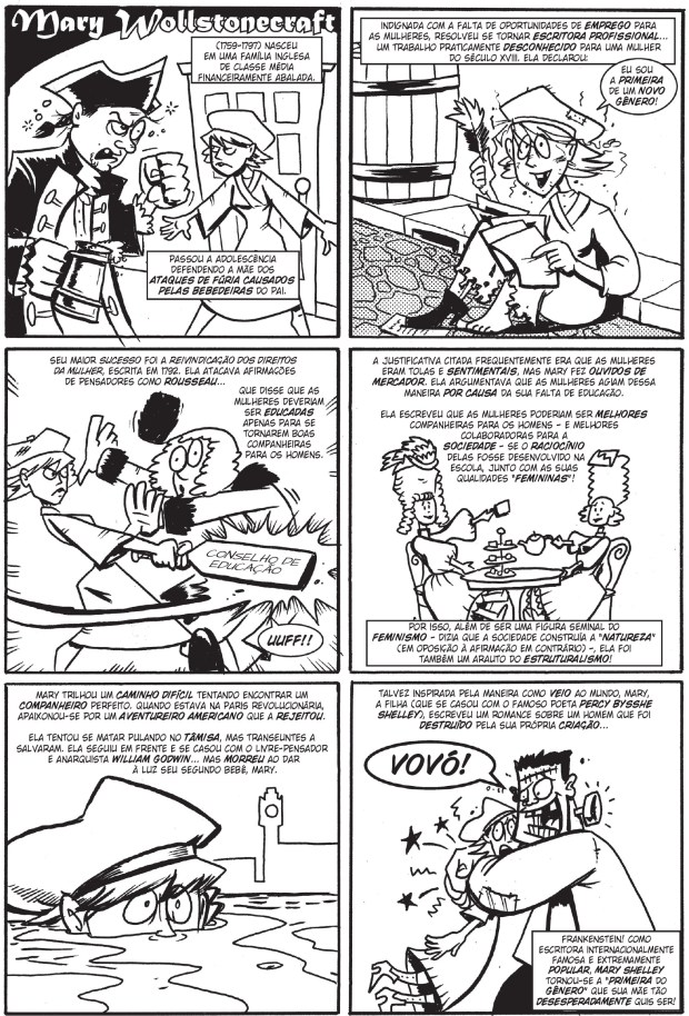 Pra terminar, um quadrinho da Mary Wollstonecraft extraído do primeiro volume antologia de clássicos da literatura universal em quadrinhos Cânone gráfico, organizado por Russ Kick e publicado pelo Barricada, novo selo de HQs da Boitempo!