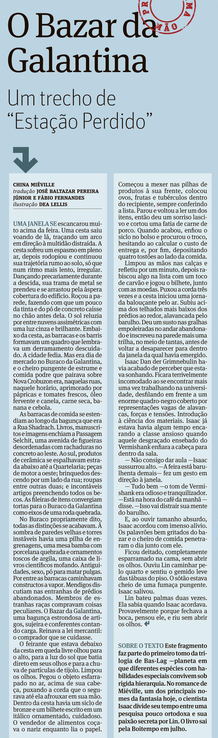 Clique na imagem abaixo para ler o trecho completo de Estação Perdido publicado no suplemento “Ilustríssima”, da Folha de S.Paulo.