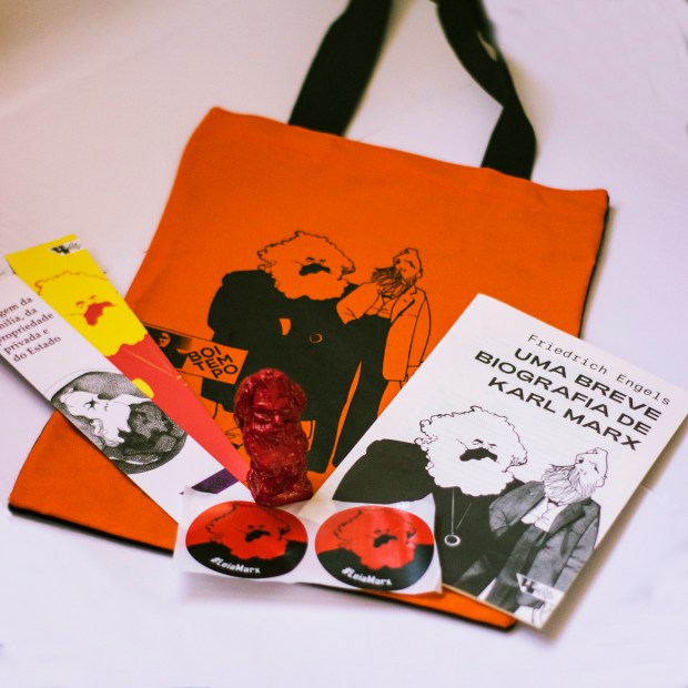 Para incentivar nossa comunidade camarada de leitores a completarem sua Coleção Marx-Engels, este ano ofereceremos presentes revolucionários para quem comprar na loja virtual da Boitempo! Todos os pedidos feitos conosco levarão um livreto exclusivo da breve biografia de Marx escrita por Engels, além de marcadores e adesivos especiais. Quem fizer compras acima do valor de R$ 250,00 leva uma bolsa Marx-Engels lindona. Para compras acima de R$ 380,00, além da bolsa, enviamos também uma escultura do barbudo feita pelo artista plástico Sergio Romagnolo.