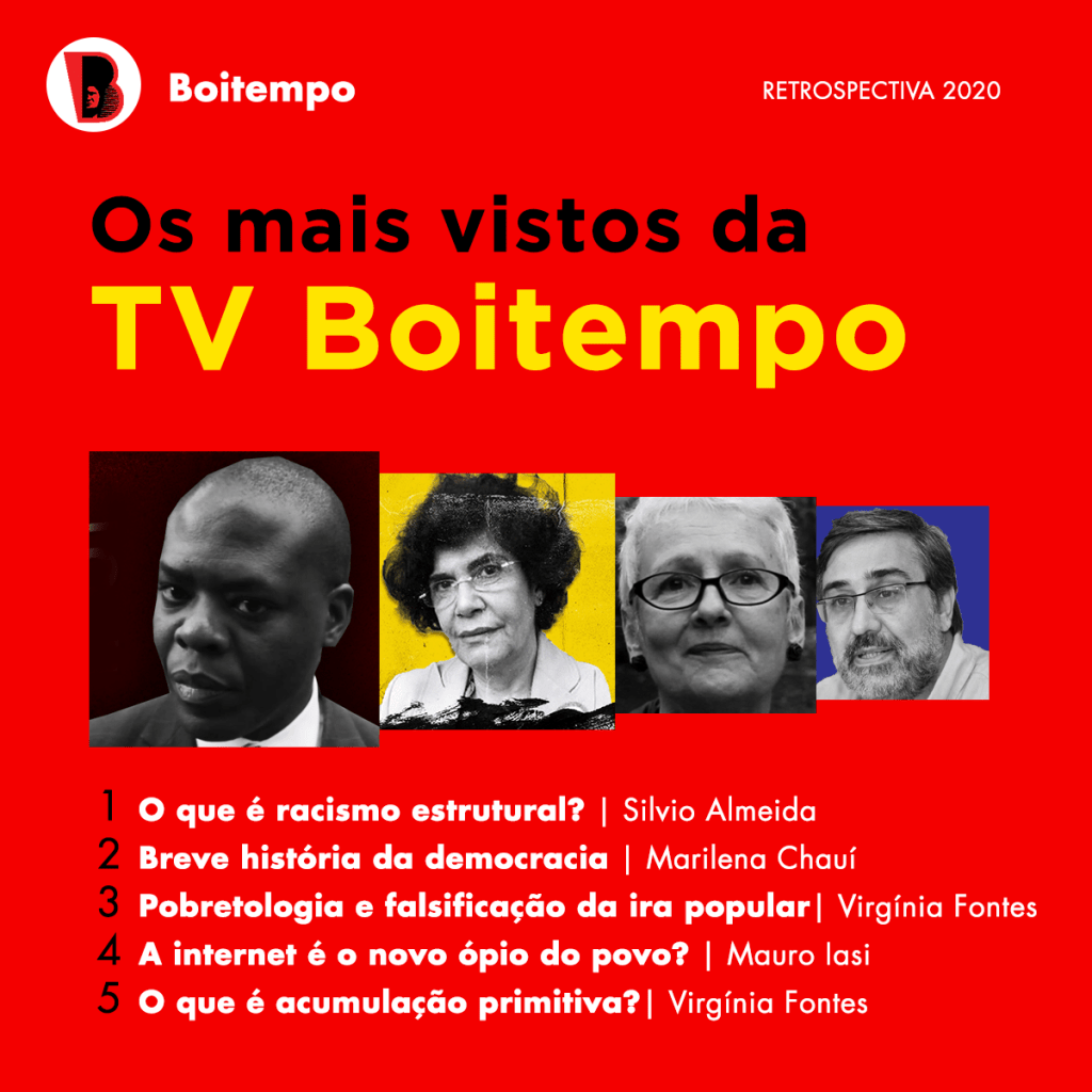 Você sabia que a Boitempo tem o maior canal de vídeos de todo o mercado editorial da América Latina? Em 2020, passamos de 155 mil inscritos com três vídeos novos por semana. Destacamos abaixo os cinco mais vistos no ano.