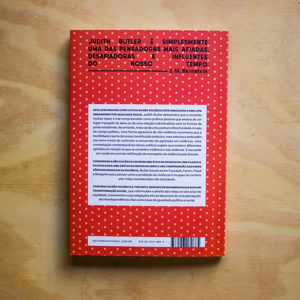 A obra, lançada originalmente em 2020, mostra como a ética da não violência deve estar conectada a uma luta política mais ampla pela igualdade social. A autora rastreia como a violência é, com frequência, atribuída àqueles que são mais expostos a seus efeitos letais. Para Butler, a condição-limite da manifestação da violência se revela quando certas vidas, uma vez perdidas, não são dignas de luto.