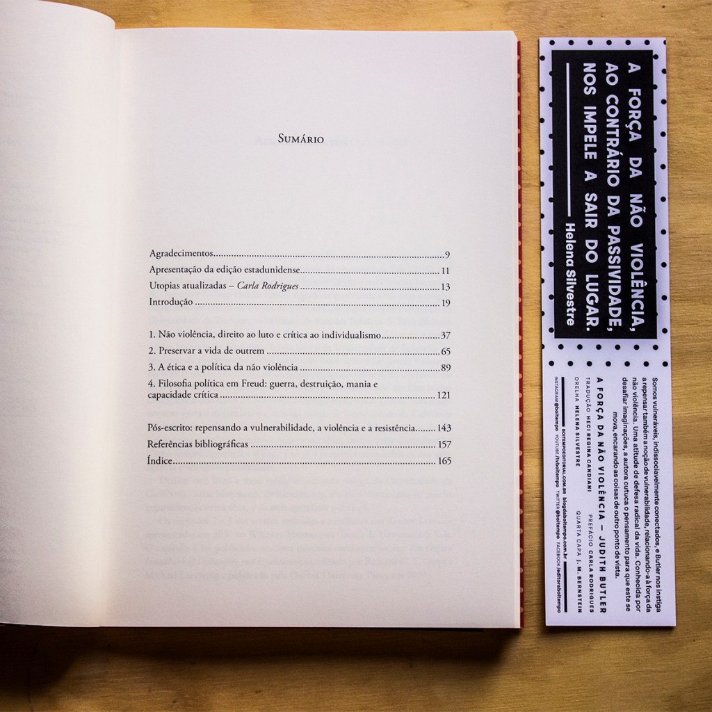 Tenho aprendido, entre quedas e perdas, um pouco sobre aquilo que me foi arrancado e sobre tudo o que foi arrancado de minha comunidade – meu corpo extenso no mundo. Por esse motivo, confesso que desconfio de grande parte dos olhares sobre a vida que simplesmente condenam a violência. Mas devo dizer que A força da não violência, de certo modo, venceu essa minha desconfiança. Aqui Judith Butler nos provoca a observar e, sobretudo, a compreender a violência a partir de um caminho diferente daquele a que fomos habituados.