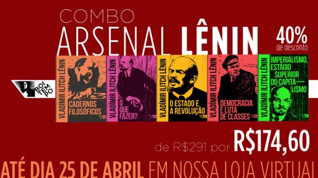 Para comemorar os 152 anos do revolucionário russo, preparamos uma promoção com 30% de desconto em suas obras, textos e em sua biografia intelectual, além de um combo com 40% de desconto com todo o Arsenal Lênin, além de brindes, entre os dias 22 e 25 de abril!