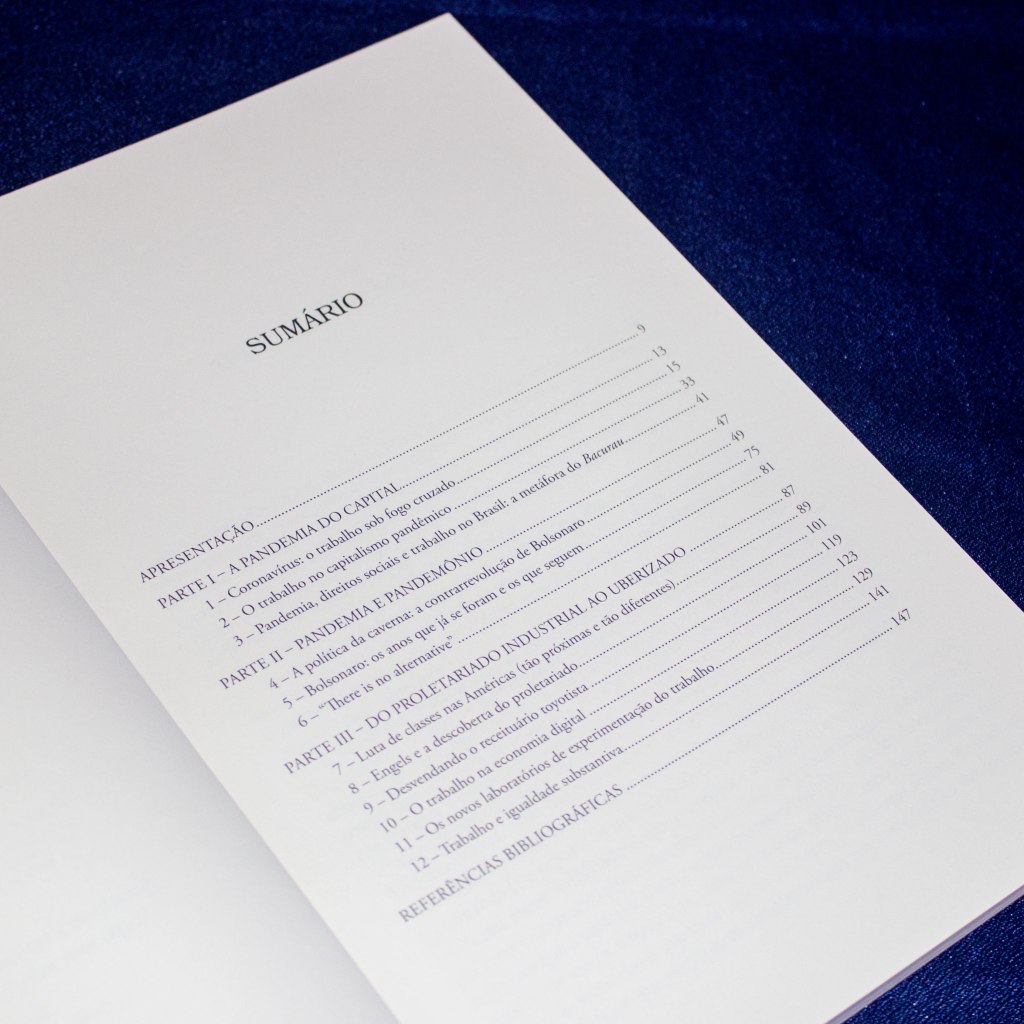Antunes destrincha diversos temas como a relação da pandemia com as reformas trabalhistas feitas nas últimas décadas, o aumento do desemprego, a constante precarização do trabalho e o afrouxamento dos vínculos empregatícios. Retomando o léxico e uma série de descobertas expostos em seus livros anteriores, o autor nos oferece uma análise da conjuntura em que nos encontramos, com seus vieses de raça, classe, gênero etc., sob o pano de fundo de uma análise marxista dos rumos do capitalismo contemporâneo.