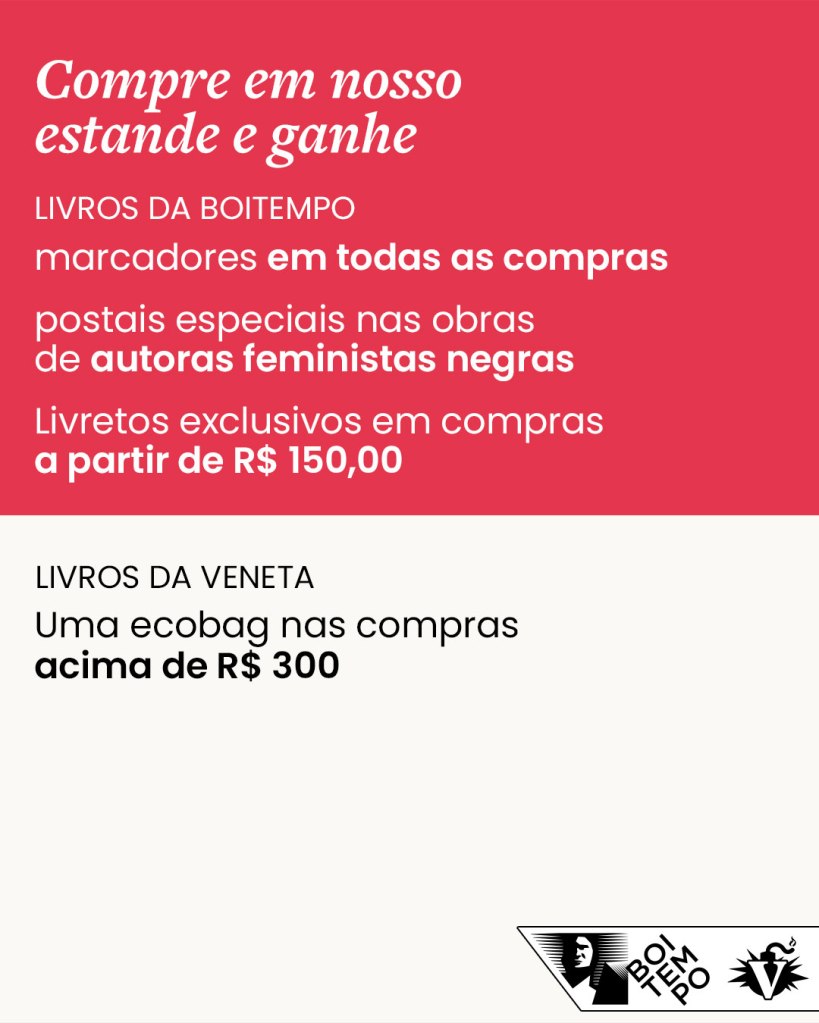 A Boitempo e a Veneta montaram um espaço especial para encontrar vocês, com uma seleção incrível de livros, brindes e sessões de autógrafos!