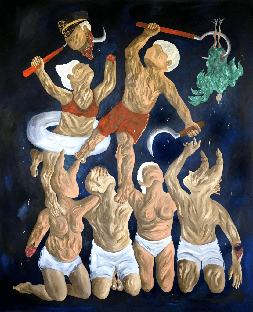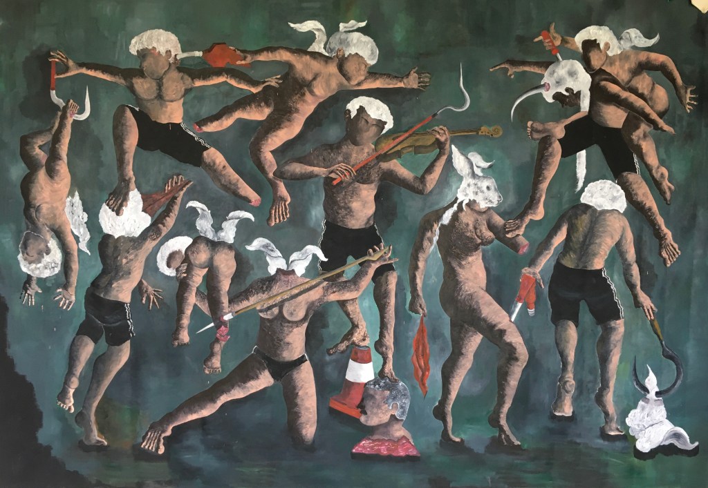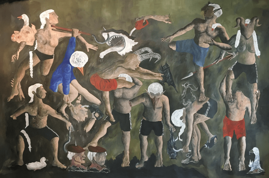 É o sujeito o mote estratégico da arte de Gabriela Fero. Não são os objetos ou a natureza, como uma crítica fácil engendraria. Objetos são inertes, natureza seria sacralizada para além do humano, de tal sorte que à sociedade se esperaria apenas a passividade de não atrapalhar o transcurso do natural ou do objetal. O sujeito é o problema decisivo da sociabilidade, e, aqui, via de regra, a arte política sucumbe ao desejo já constituído nos sujeitos pelo Sujeito capital. Poder estatal, representatividade ou mesmo eventos catárticos como rebelião são produtos/reações do desejo capitalista já dado. Gabriela Fero vai além da entrega do que se espera: os sujeitos são produtores do capital porque são ao mesmo tempo produtos dele; seus desejos são seus problemas; sua catarse é sua sucumbência ao mesmo; sua vitória parcial, individual, grupal ou de classe é o fracasso da transformação do todo. Pintar o sujeito desejante da ordem que o constitui, o explora e o domina, e fazer de sua denúncia estrutural o desejo de um sujeito totalmente outro, que ainda não há, é a melhor dialética da subjetividade que pode ser promovida pela arte crítica.