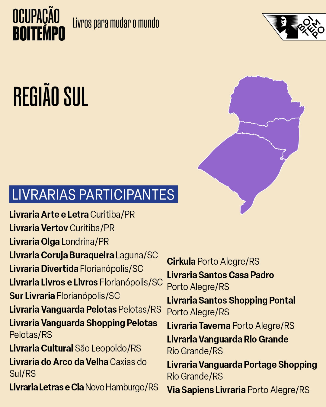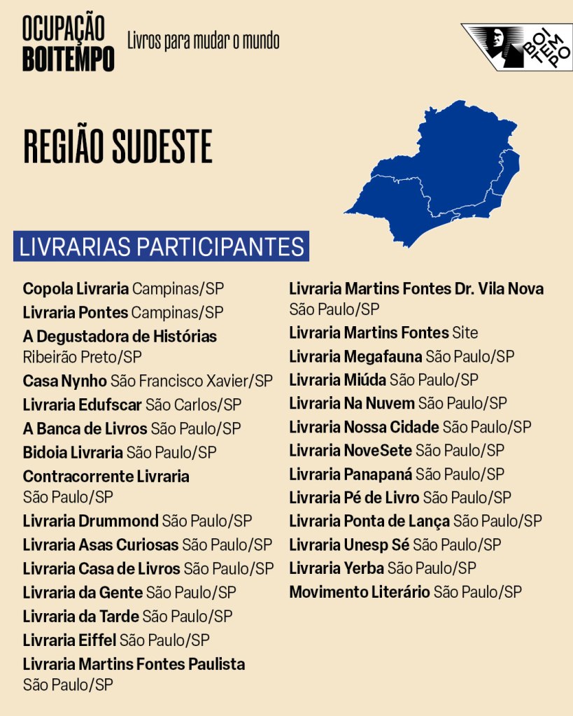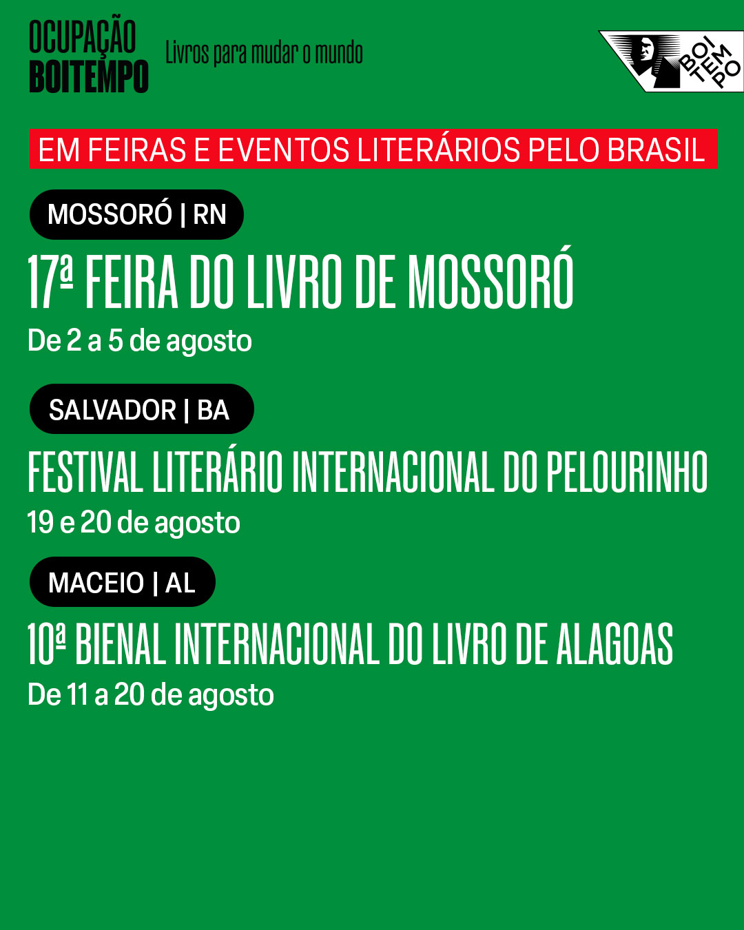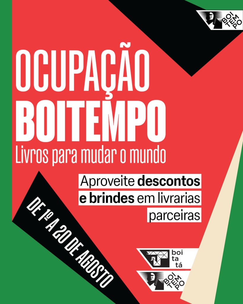 De 1º a 20 de agosto, a Boitempo organiza a segunda edição da Ocupação Boitempo e Ocupação Boitatá, evento que traz ações e promoções em mais de 90 livrarias espalhadas por todo o país, além de feiras e eventos literários. As livrarias de Norte a Sul convidam o leitor a pôr o pé na rua e sentir a experiência da compra presencial!
