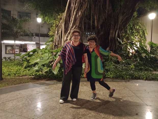 A mãe da minha prima Eugênia e minha mãe, na estreia de Retratos Fantasmas, no cine-teatro do parque, em 2023.