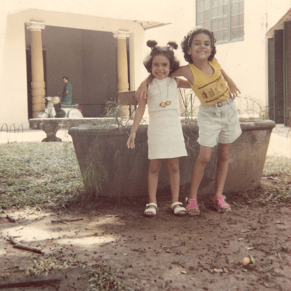 Minha prima Eugênia e eu, no cine-teatro do parque, anos 1990.