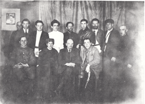 Lênin com o grupo de colaboradores da “Agência Central de Imprensa”, que trabalharam na gravação de seus discursos em disco de gramofone. Moscou, 25 de abril de 1921.