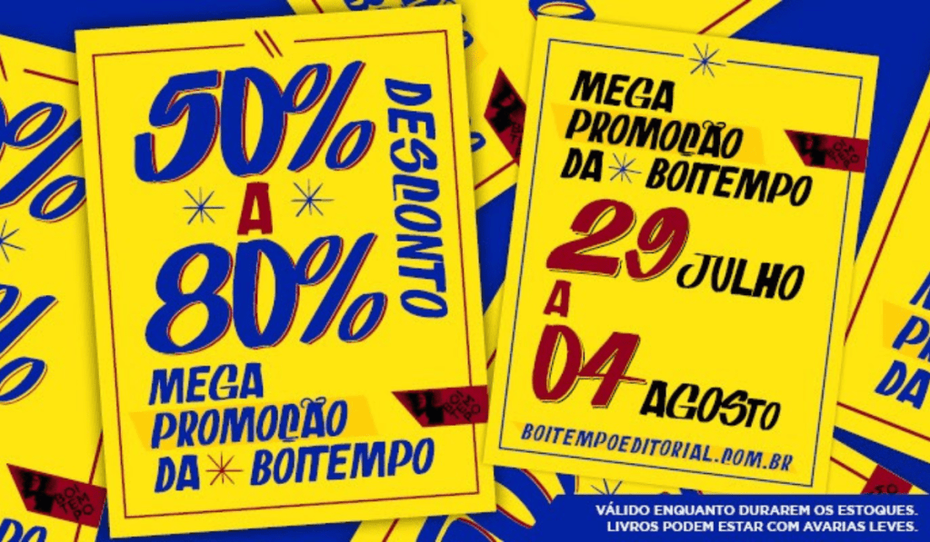 De 29 de julho a 04 de agosto 11 de agosto [PRORROGAMOS!], o site da Boitempo oferece descontos imperdíveis em obras selecionadas! É isso mesmo: descontos 50 a 80% em títulos incríveis!