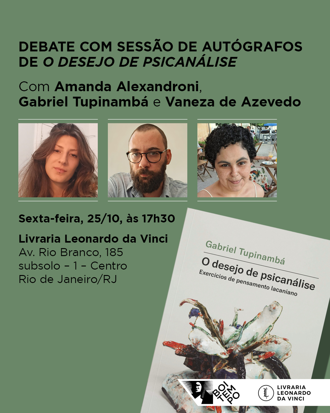 O desejo de psicanálise, de Gabriel Tupinambá, é a melhor crítica até agora realizada da ideologia lacaniana. Em tempos de elogios fáceis e autorreferidos, é difícil dar a essa afirmação seu devido peso. Ainda que comece e se concentre em objeções milimétricas ao millerianismo, seu texto serve para qualquer derivação ou assimilação do pensamento lacaniano – e isso só poderia ser feito por alguém com pleno domínio de áreas tão díspares quanto a formalização lógica, as políticas marxistas revolucionárias e a viva experiência de instituições e movimentos sociais “tais como eles são”.