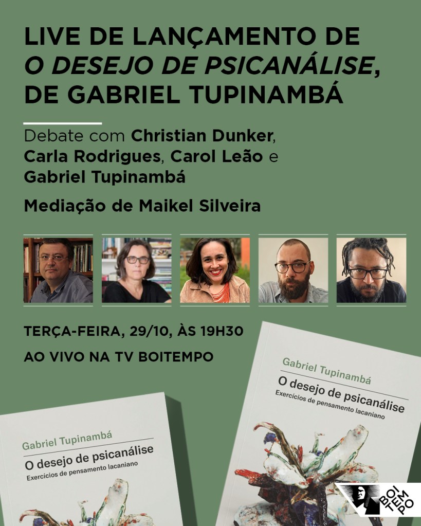 No dia 29/10 às 19h30, não perca a live de lançamento do livro Christian Dunker, Carla Rodrigues, Carol Leão e Gabriel Tupinambá, mediação de Maikel Silveira, na TV Boitempo: