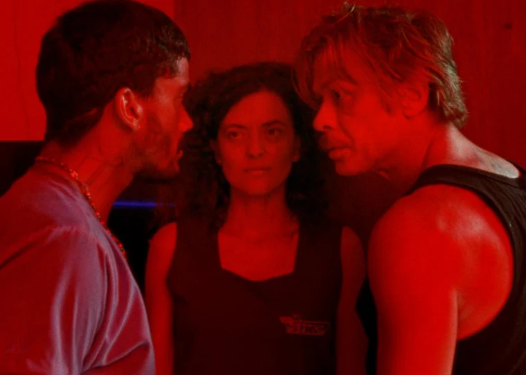 É interessante notar como essa agressividade que tangencia a violência também funciona como uma espécie de combustível do desejo do nosso trio Heraldo-Dayana-Elias. Heraldo passa o filme se atracando: nas lutinhas com o irmão, na noitada com a mulher misteriosa que o leva ao motel, nos embates com Elias, nos amassos com Dayana. Já Dayana, casada — ou condenada — ao opressor Elias, acaba se apaixonando pelo homem recém-chegado que ameaça lhe quebrar o pescoço. E Elias, por fim, parece especialmente interessado em iniciar a sacanagem à força, no Mata-Leão, como quem chama o outro pra briga, seja Dayane ou Heraldo. A violência é mesmo um circuito difícil de interromper. E que, muitas vezes, tem o poder de incendiar a fuleragem. E de transformar relações em cinzas.