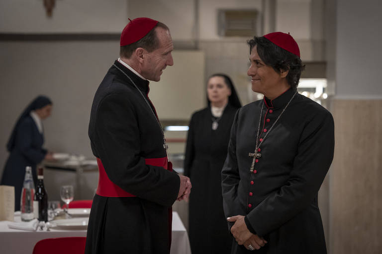 O cardeal Vincent Benitez — interpretado por Carlos Diehz — é outro personagem extraordinário; sua participação no conclave surpreende a todos, pois ninguém sabia de sua recente nomeação como arcebispo de Cabul. Benitez é silencioso, observador, atento às necessidades daqueles com quem divide o mundo, preocupado sobretudo com o trabalho, com a causa que sustenta ativamente. Suas palavras apaziguadoras destoam da violência educada que circula entre os grupos e não pude deixar de associá-lo discretamente à figura do Papa Francisco que, aliás, assim como o ator, também é latino.