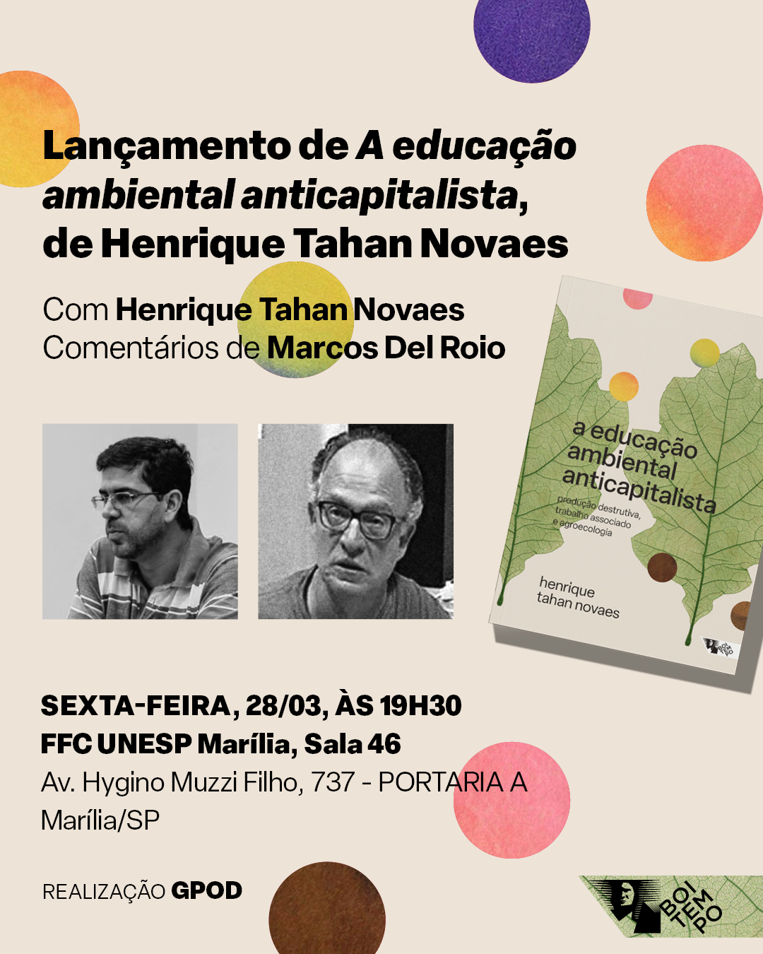 “Se a forma escolar capitalista forma para relações dominação, de mando e de submissão, é preciso exercitar uma nova forma escolar, na qual se vivencie a auto-organização”, aponta Henrique Tahan Novaes. O trecho foi retirado de A educação ambiental anticapitalista: produção destrutiva, trabalho associativo e agroecologia, livro do mês do Armas da Crítica, o clube do livro da Boitempo.