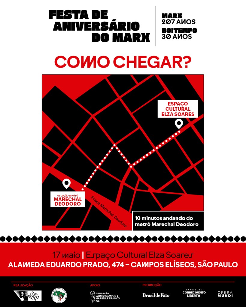 Realizada desde 2018, a Festa de Aniversário de Marx reuniu no ano passado mais de 3 mil pessoas e esta edição deve sar ainda maior. Isso evidencia a relevância do pensamento marxista nos dias de hoje: “Os jovens que buscam a transformação revolucionária do mundo sabem que a teoria precisa ser instrumento da política, da materialização dos seus ideais em projetos concretos. A extrema direita há anos distorce o pensamento marxiano. Nosso esforço é para que o debate real alcance cada vez mais pessoas”, comenta Ivana Jinkings, diretora da Boitempo.