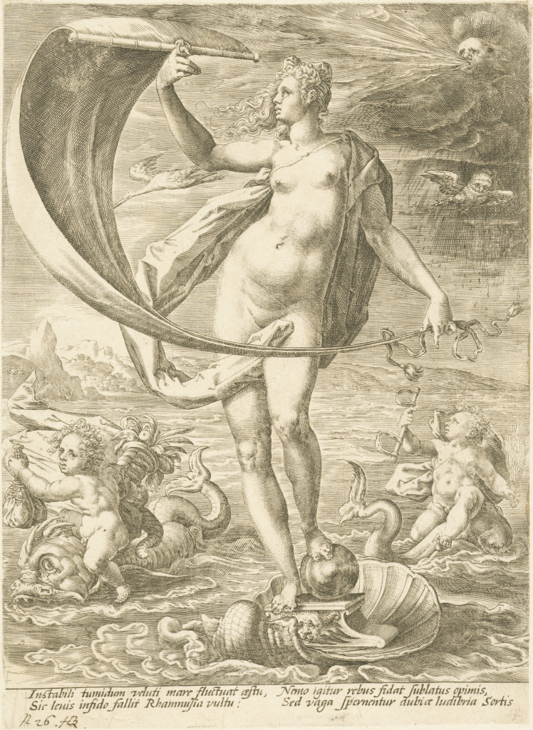“Fortuna sobre a esfera” (1550), Hendrick Goltzius. Imagem: WikiCommons.