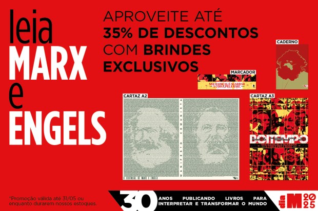 Descontos imperdíveis em todos os livros da coleção Marx-Engels e outros títulos selecionados. Não perca essa oportunidade de completar sua estante e se aprofundar nos estudos do marxismo, e ainda garanta brindes em todas as compras! Até 31 de maio de 2025, exclusivamente no site da Boitempo.