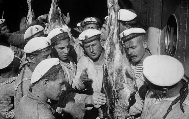 Obviamente, uma lista sobre filmes inspirada por Marx não poderia deixar de lado O encouraçado Potemkin, dirigido pelo soviético Sergei Eisenstein. Para além de figurar um episódio marcante da história política russa — o motim de marinheiros ocorrido na costa de Odessa em junho de 1905, que na percepção de Lênin não apenas reforçava as avaliações que fizera no panfleto Duas táticas da social-democracia na revolução democrática, como induzia na prática uma mudança de posição necessária no interior do movimento revolucionário russo —, trata-se de um longa que, notoriamente, revolucionou a história do cinema por diversos motivos, mas, em especial, em razão de sua montagem. Conhecida como paralela, a montagem de Eisenstein tem como base o pensamento dialético marxista. Nas palavras do próprio diretor: