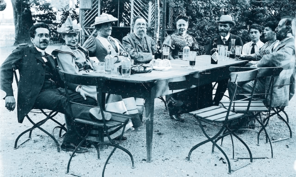 Clara Zetkin e Friedrich Engels com Simon Ferdinand, Frieda Simon, Julie e August Bebel, Ernst Schaffer, Regine e Eduard Bernstein após o 3º Congresso da II Internacional Socialista dos Trabalhadores, ocorrido entre 6 e 12 de agosto de 1893. Foto: Herman Greulich/Wikimedia Commons