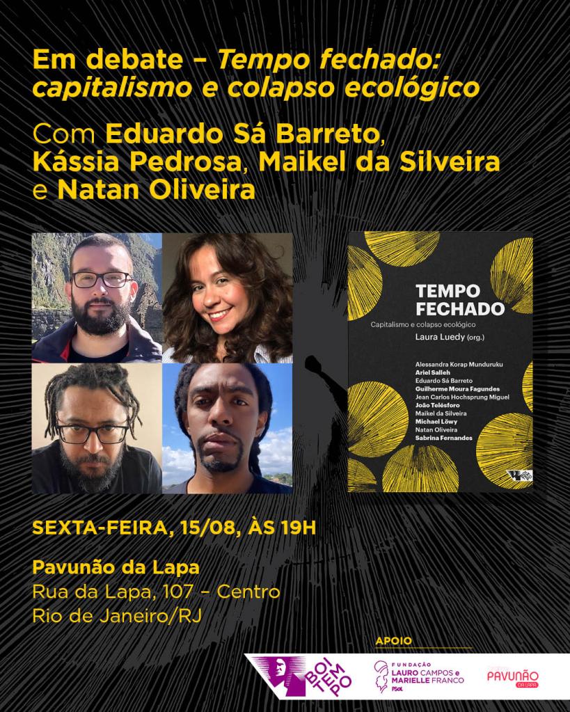 Não é de hoje que a ciência faz previsões alarmantes em relação ao cenário ecológico desenhado pelo modo de produção dominante ao redor do mundo. Só mais recentemente, porém, as evidências disso têm se imposto à nossa experiência sensível mais cotidiana. Tempo fechado: capitalismo e colapso ecológico, obra organizada pela socióloga marxista Laura Luedy, traz ao público dez textos inéditos de diferentes pensadoras e pensadores que tratam da questão indo à sua raiz. Suas reflexões vão além das abordagens do ambientalismo mainstream e colocam o dedo na ferida do capitalismo. Afinal, é possível evitar o colapso ecológico planetário sem desmontar o arranjo social que governa nossa relação com a natureza?
