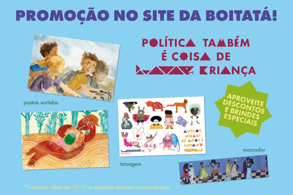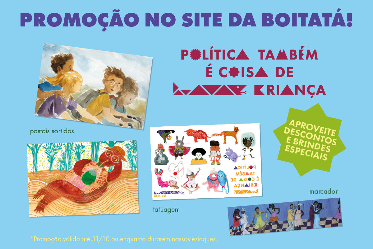 A Boitatá, irmãzinha caçula da editora Boitempo, completa 10 anos mostrando que política também é coisa de criança! Depois da Ocupação Boitatá — uma grande festa realizada em São Paulo —, chegou a hora de celebrar no Brasil inteiro: aproveite descontos de 10% em todos os livros da Boitatá, além de brindes especiais em todos os pedidos no nosso site e em diversas livrarias parceiras. Encontre no mapa a livraria mais próxima de você: