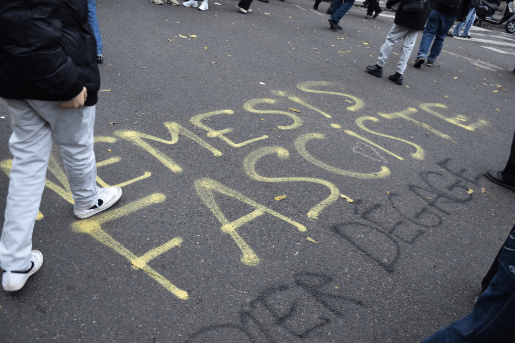 A tentativa de responsabilizar La France Insoumise pela morte de Deranque pode incentivar uma escalada de agressões contra a esquerda. Nas últimas semanas, houve depredações em escritórios de parlamentares do partido, ameaças de morte a seus representantes e até um alerta de bomba na sede nacional, que precisou ser evacuada. Enquanto esse clima de intimidação se adensava, em 21 de fevereiro a extrema direita marchou pelas ruas de Lyon em uma passeata de homenagem ao seu novo mártir. O ato reuniu mais de três mil pessoas e foi marcado por saudações nazistas. Participaram militantes da Action Française, do grupo neonazista Zouaves Paris e estudantes ultranacionalistas ligados ao sindicato La Cocarde, além de ativistas identitários do Némésis, da Ligue du Midi, das Jeunesses nationalistes e de l’Oeuvre française. Neofascistas italianos da CasaPound e do Lealtà Azione também estiveram presentes, evidenciando a densidade das conexões transnacionais que sustentam esse meio.