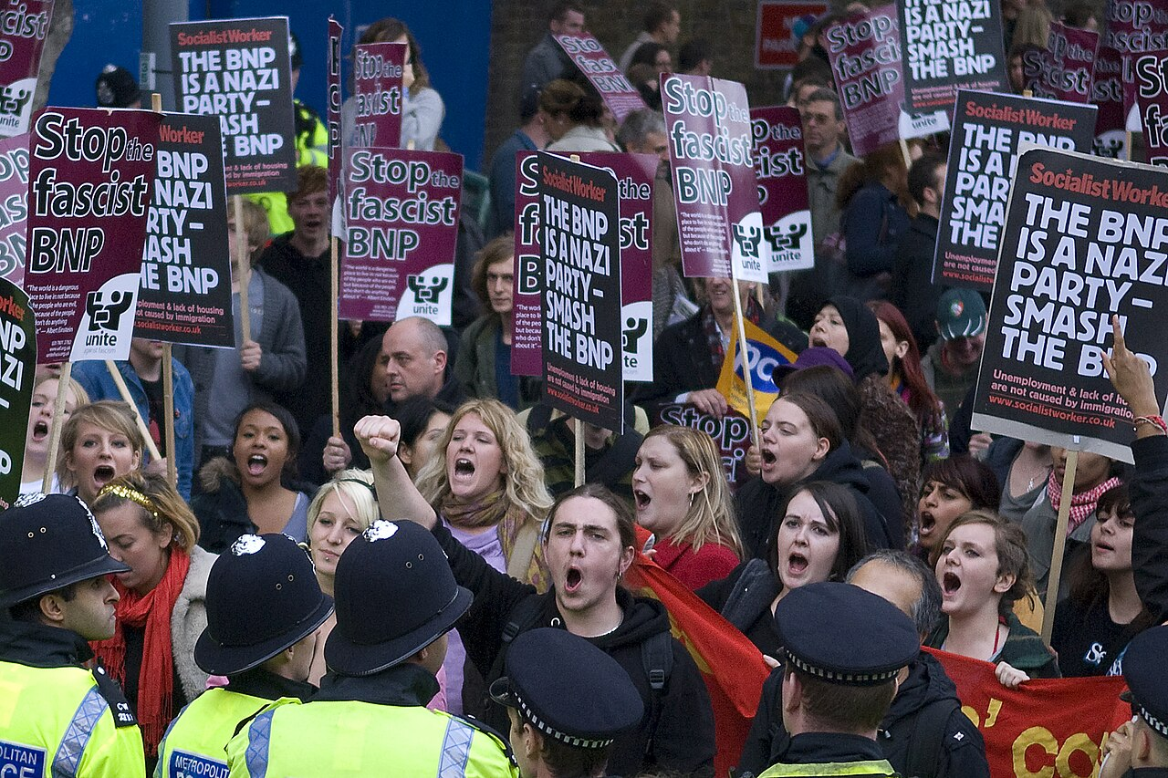 Protestos contra a extrema direita “verde” na Inglaterra, em 2009. Imagem: WikiCommons