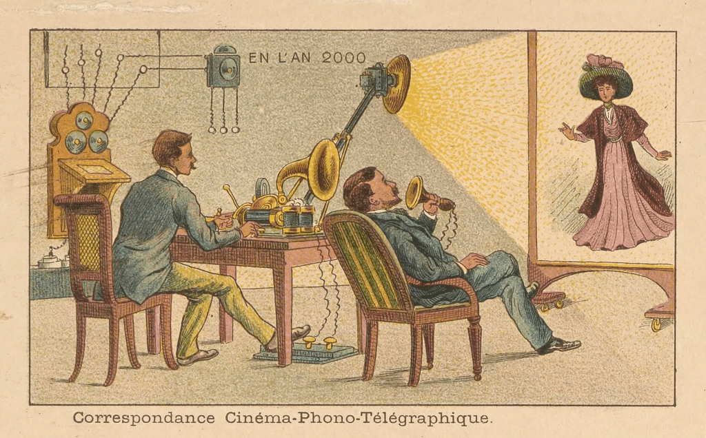 Cartão de Jean-Marc Côté (c. 1900) imaginando o ano 2000.. Imagem: Public Domain Review