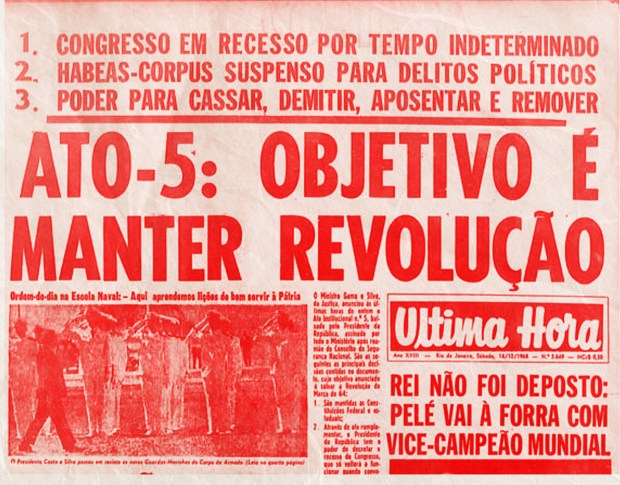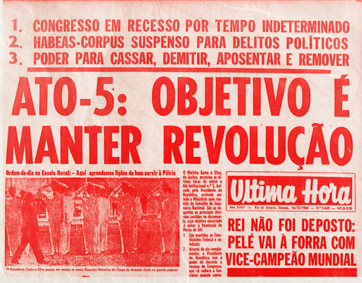 No dia 13 de dezembro de 1968, extamente 50 anos atrás, o então ministro da Justiça Gama e Silva, junto com o locutor Augusto Curi, pronunciaram, direto do Salão principal do Palácio das Laranjeiras, o Ato Institucional de número 5. Para refletir sobre os significados e a atualidade do AI-5, a semanas da posse de Jair Bolsonaro, três artigos inéditos de colunistas no Blog da Boitempo, e três indicações indispensáveis de leitura.