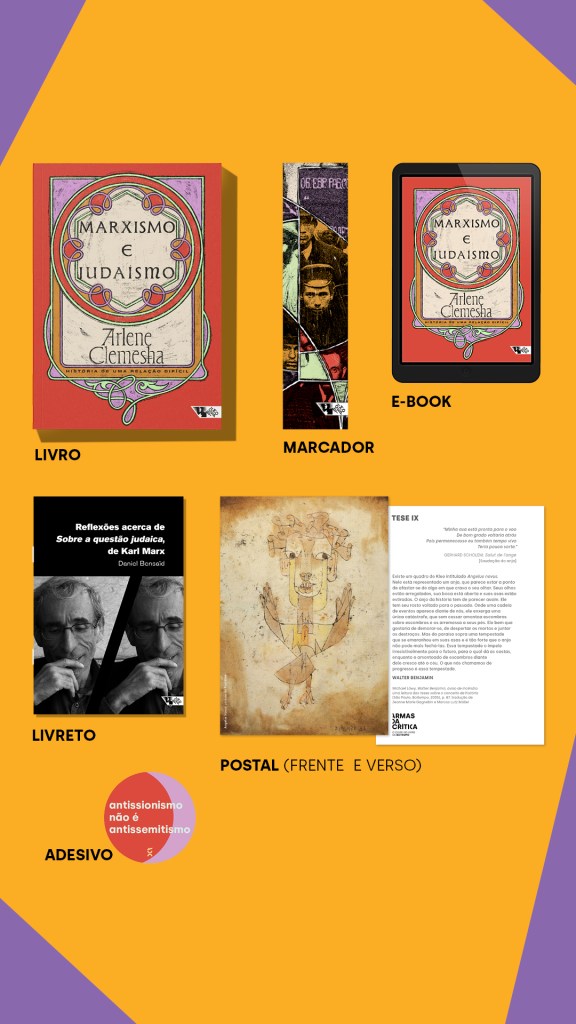 Além do livro, os assinantes do Armas da Crítica de março de 2025 receberão o livreto com o texto “Reflexões acerca de Sobre a questão judaica“, de Daniel Bensaïd, um postal, além de adesivo e marcador de páginas.