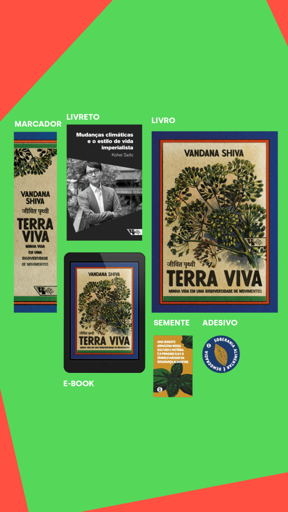 Além do livro, marcador e adesivo, nossos assinantes recebem o livreto “Mudanças climáticas e o estilo de vida imperialista“, de Kohei Saito, e sementes de manjericão.