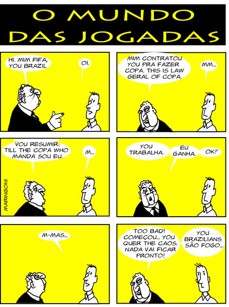 [ilustrações e quadrinhos em torno da Copa e das Olimpíadas]